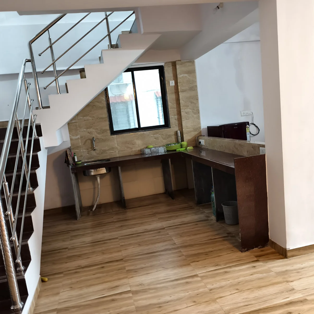 - Kitchen Essentials: Fridge, water geyser, induction stove